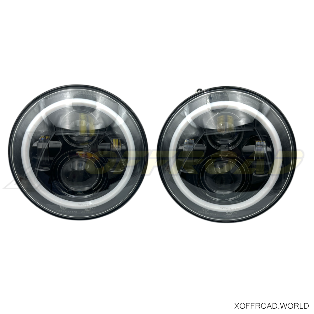 Europeiska homologerade LED-strålkastare (E9) inklusive certifikat. Dessa lampor har inte parkeringsljusfunktion, endast halvljus och helljus! Byt ut dina fabriksstrålkastare med en högpresterande LED-lampa! Dessa LED-strålkastare ökar snabbt synligheten, vilket leder till bättre säkerhet. X-Offroad-lampor är utformade för offroad-entusiasten som kräver det bästa. Strålkastarna har ett H4-uttag (EU-modeller). H13 till H4 reduktion ingår. Enkel installation: Det gör att den här 7" LED-lampan snabbt och enkelt kan ersätta dina vanliga strålkastare. Dessa nya LED-strålkastare har en toppmodern konstruktion och branschledande funktioner för att klara av extrema terrängkörningar. Säljs i par.